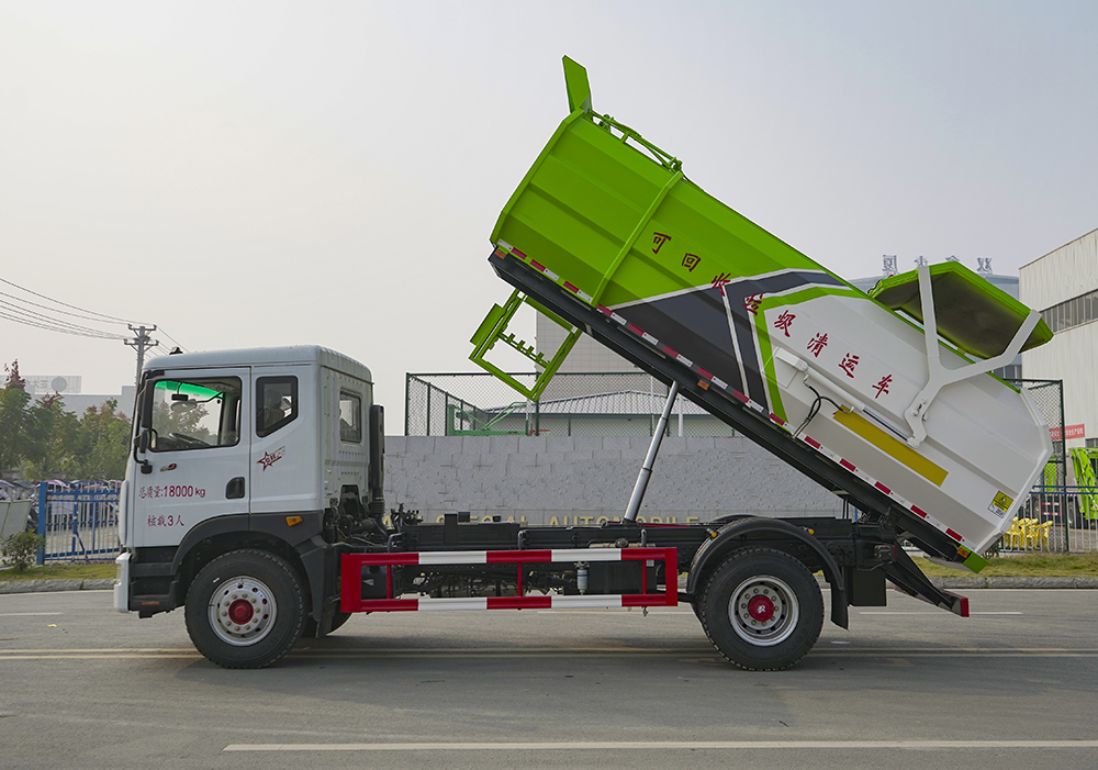 側(cè)裝對(duì)接式垃圾車的裝載容積是12立方,特點(diǎn)是一個(gè)車能配幾十個(gè)垃圾桶,能實(shí)現(xiàn)一臺(tái)車與多個(gè)垃圾桶聯(lián)合作業(yè),循環(huán)運(yùn)輸,充分提高了車輛的運(yùn)輸能力,特別適用于短途運(yùn)輸,如環(huán)衛(wèi)部門對(duì)城鎮(zhèn)垃圾的清理、運(yùn)輸?shù)?。同時(shí),掛桶垃圾車還可以加裝其它功能,形成其它多功能掛桶垃圾車,如:掛桶壓縮式垃圾車、掛桶式泔水垃圾車、掛桶式對(duì)接垃圾車等。