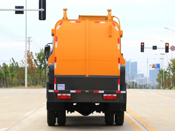 4、改裝部分具有裝、卸垃圾自動化程度高、工作可靠、密封性好、裝載容積大、操作簡便、作業(yè)過程密閉,無污水泄露和異味的散發(fā),環(huán)保性好等特點。